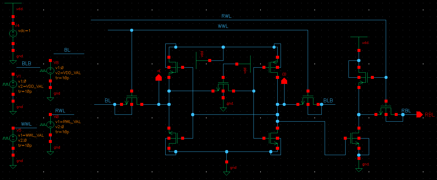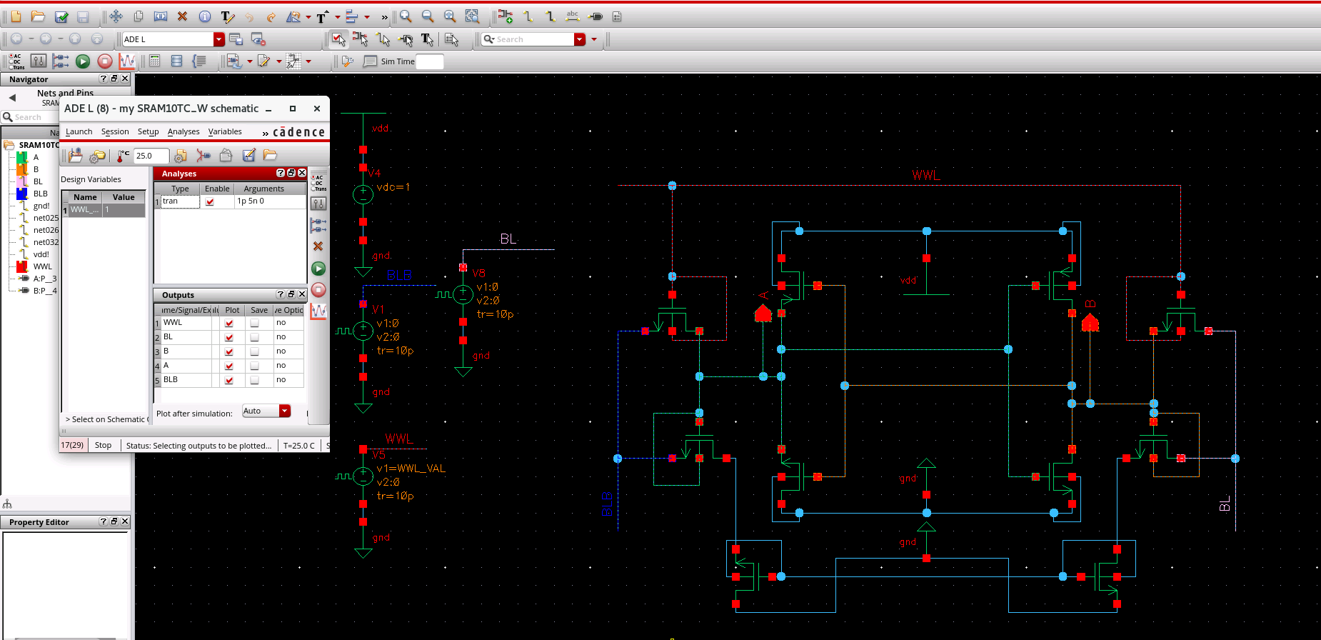 This Variation resilient 10T SRAM model was proposed by Animul Islam, Mohd Hasan and Tughrul Arslan in 2012, International Journal of Electronics. This model is designed and Transient Analysis is performed in order to do comparition. The same TA tests were conducted for this model as well. Cadence Virtuoso is used for schematic design and HSPICE is used for netlist simulation. 15nm FinFET PDK tool kit is used to design this model.