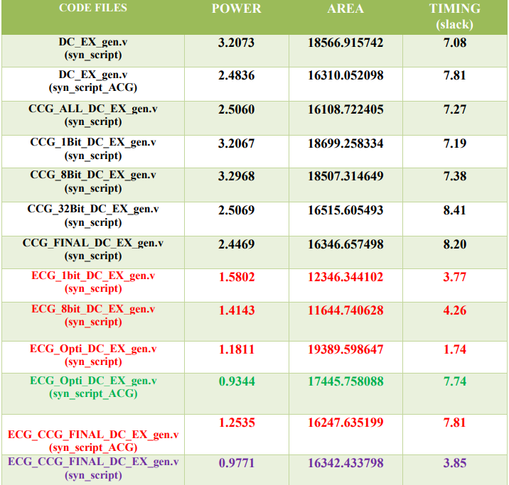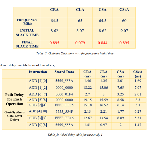 Implemented five different 32-bit CPU architectures using standard ASIC flow to achieve desired slack time. Four of them were using CRA, CLA, CSA, and CSeA Adders. The fifth one is with Comparator and CLA adder. Performed RTL Synthesis, Logic Synthesis, PnR, and Post PnR, for each design, and initial slack time and final optimized slack time were recorded with power and area reports. Finally, GDSII Layout files were collected.